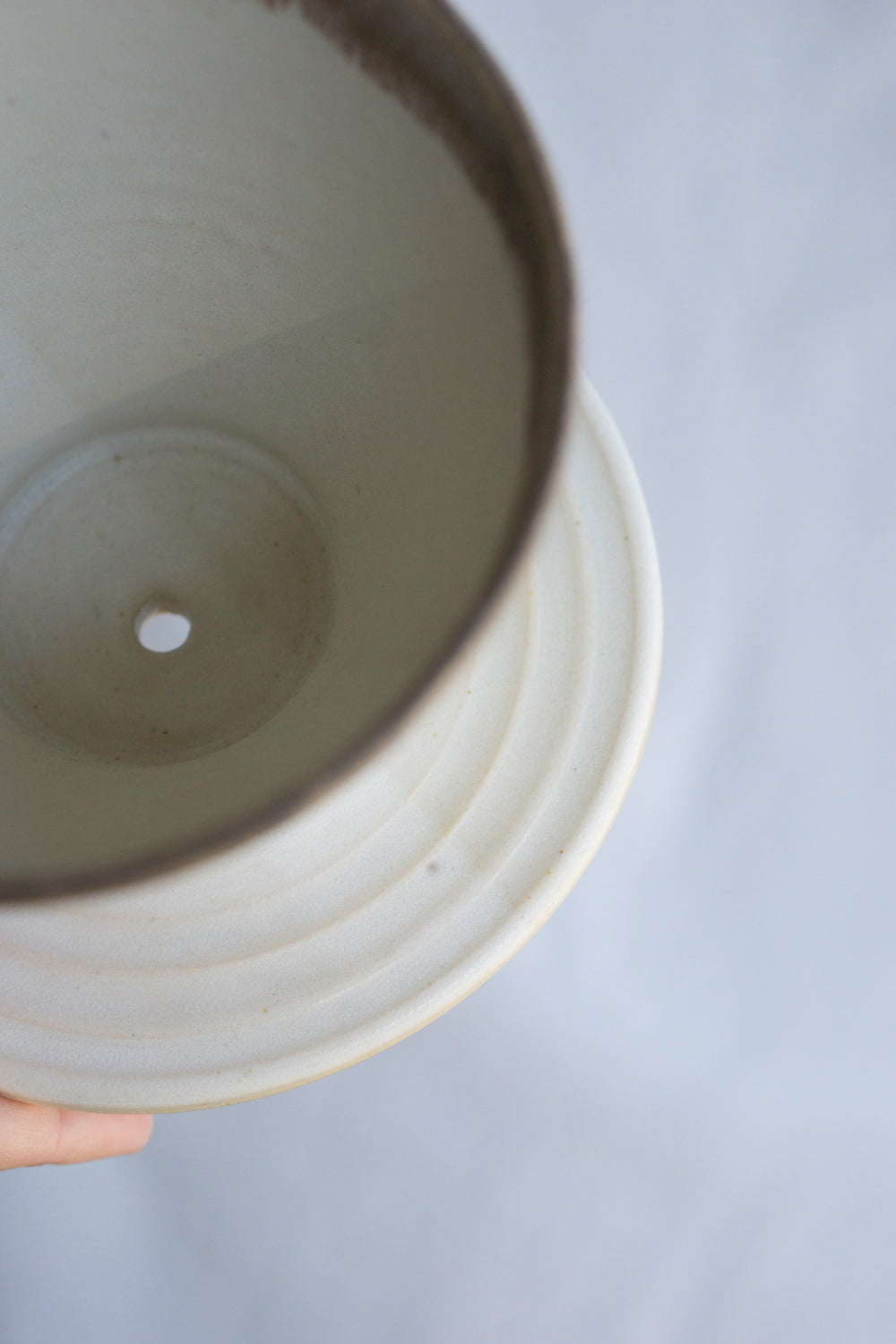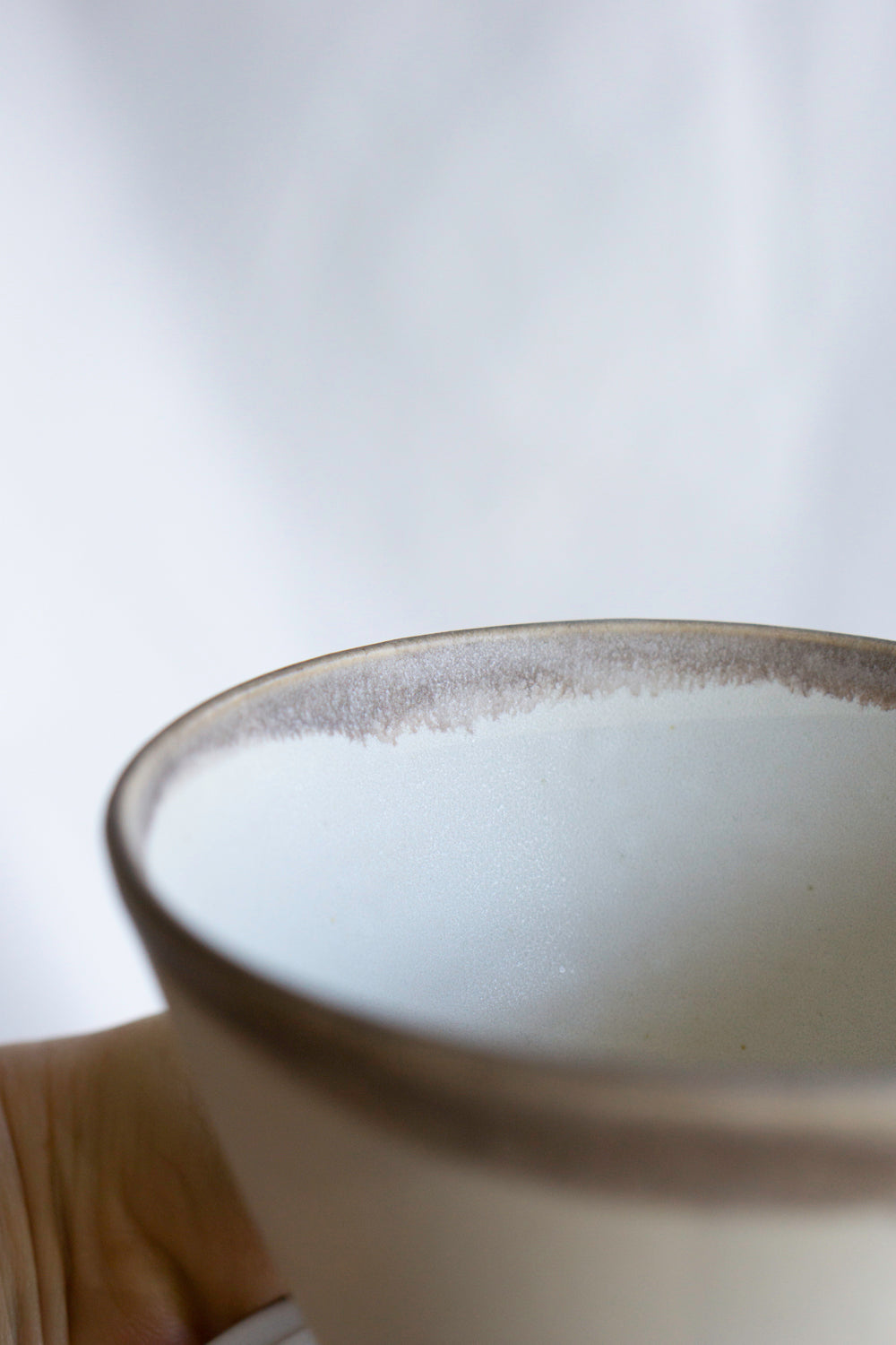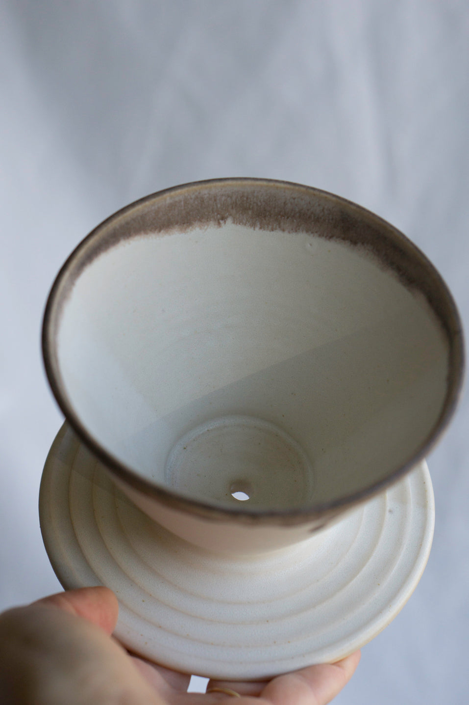 Wheel-thrown and finished in a soft matte white glaze with a spontaneous black touch along the rim, this coffee dripper makes a practical and delightful gift for pour-over lovers. Thoughtfully crafted, it adds both beauty and function to any morning ritual