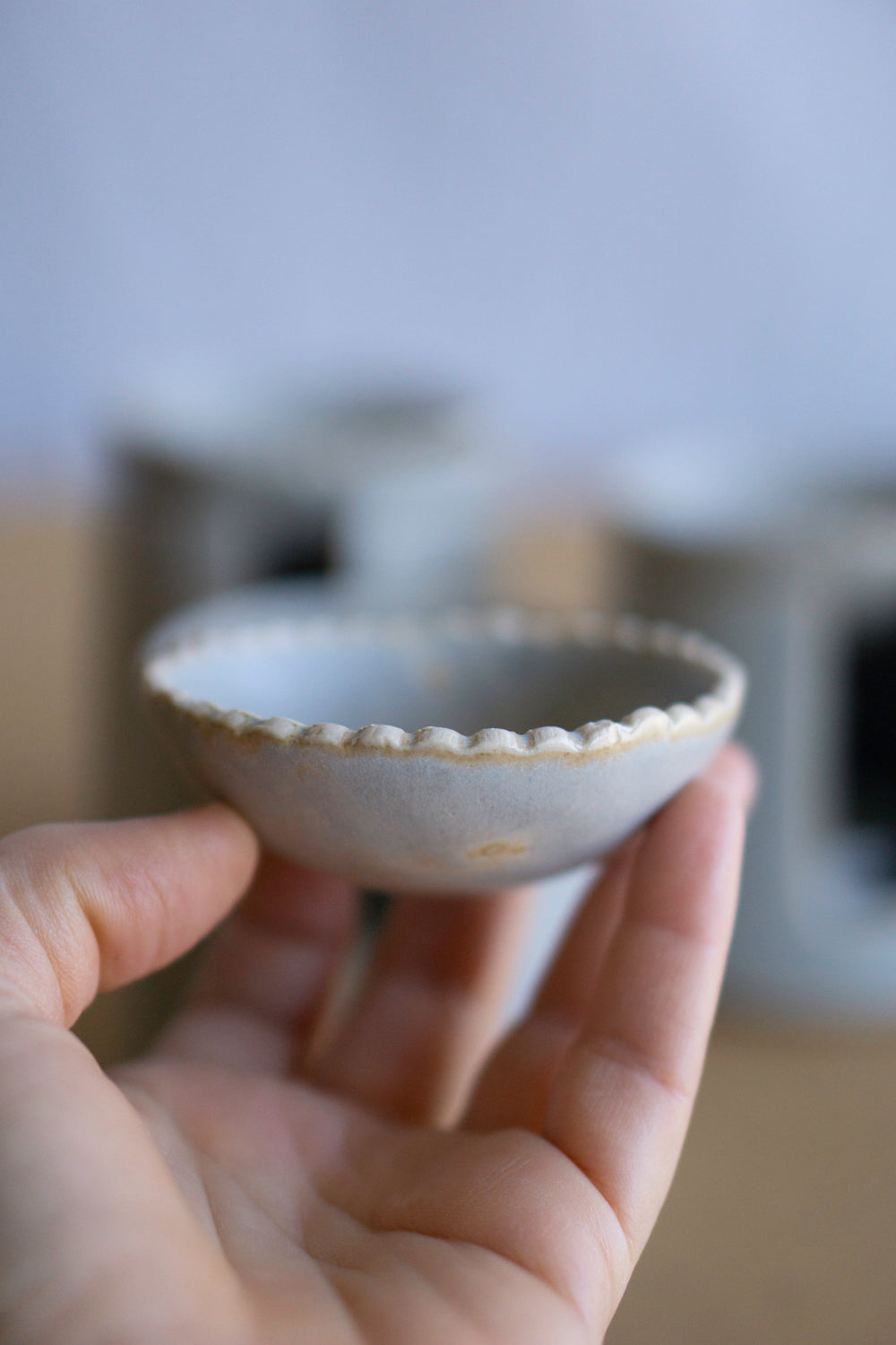 Wheel-thrown and finished with a matte grey-blue glaze.