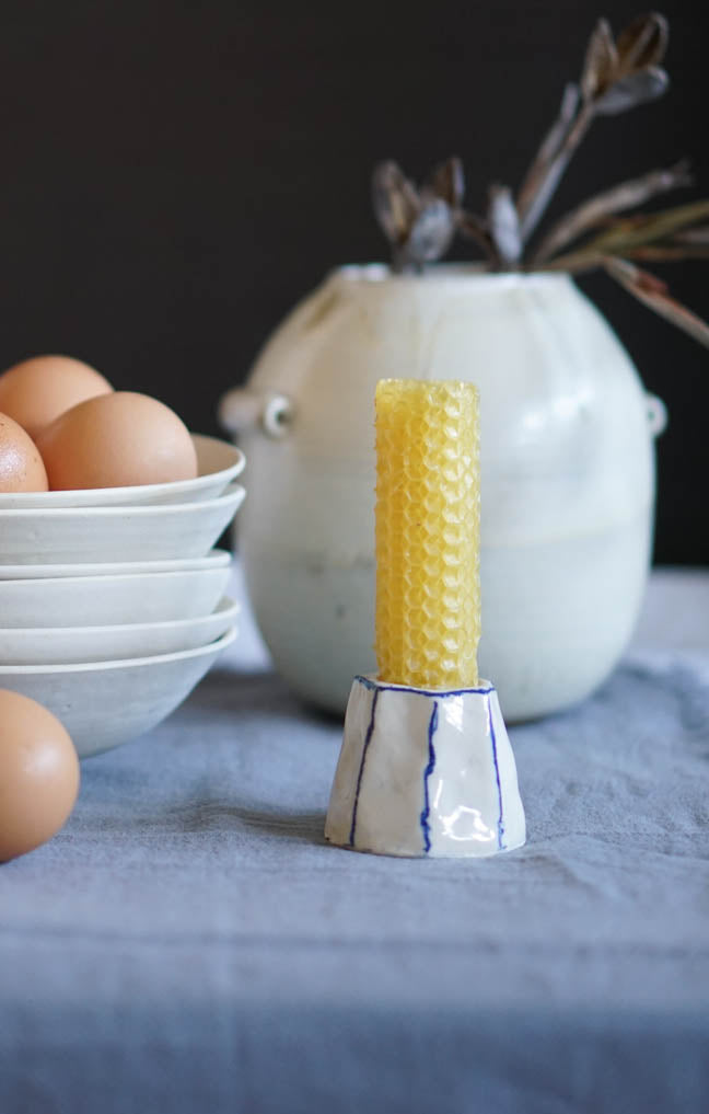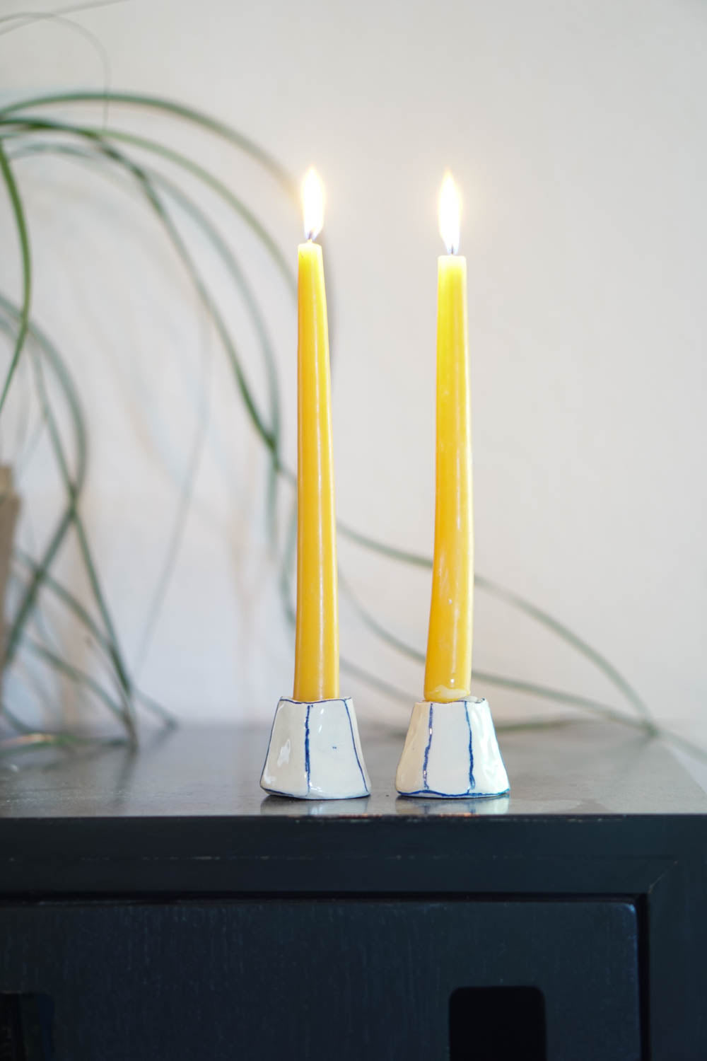 Each taper holder is thoughtfully designed and hand-painted, featuring a style that combines a charming, naive simplicity with a minimalist and joyful aesthetic.