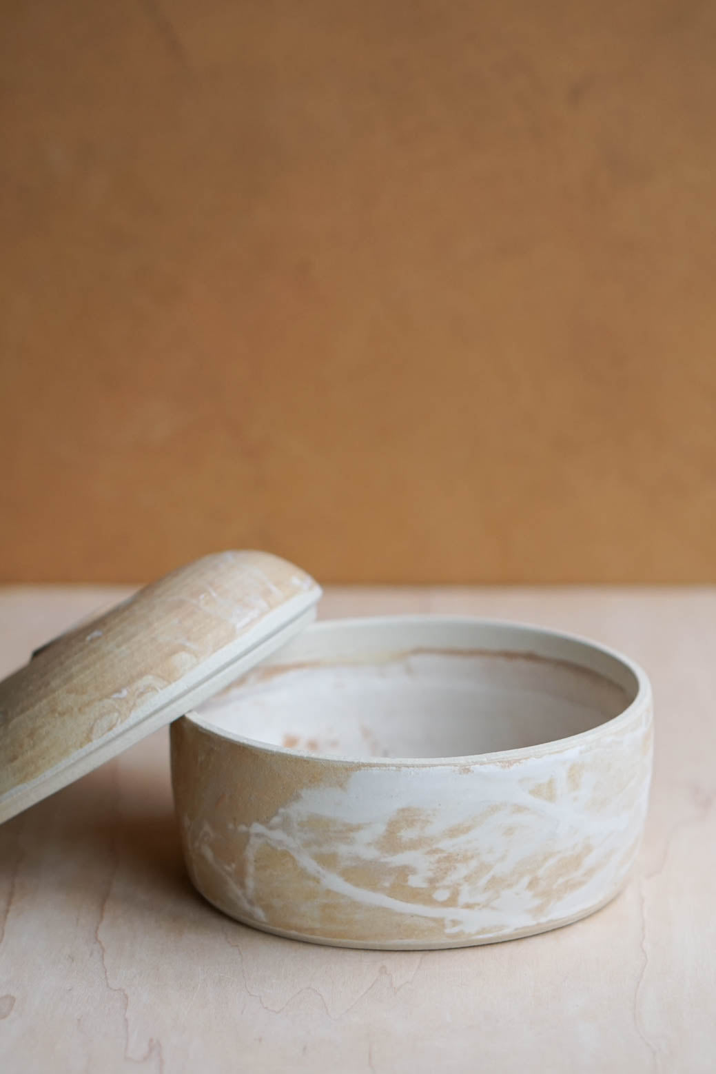 hand thrown on the pottery wheel and glaze with 2 different matte glazes which makes the variation in colors.