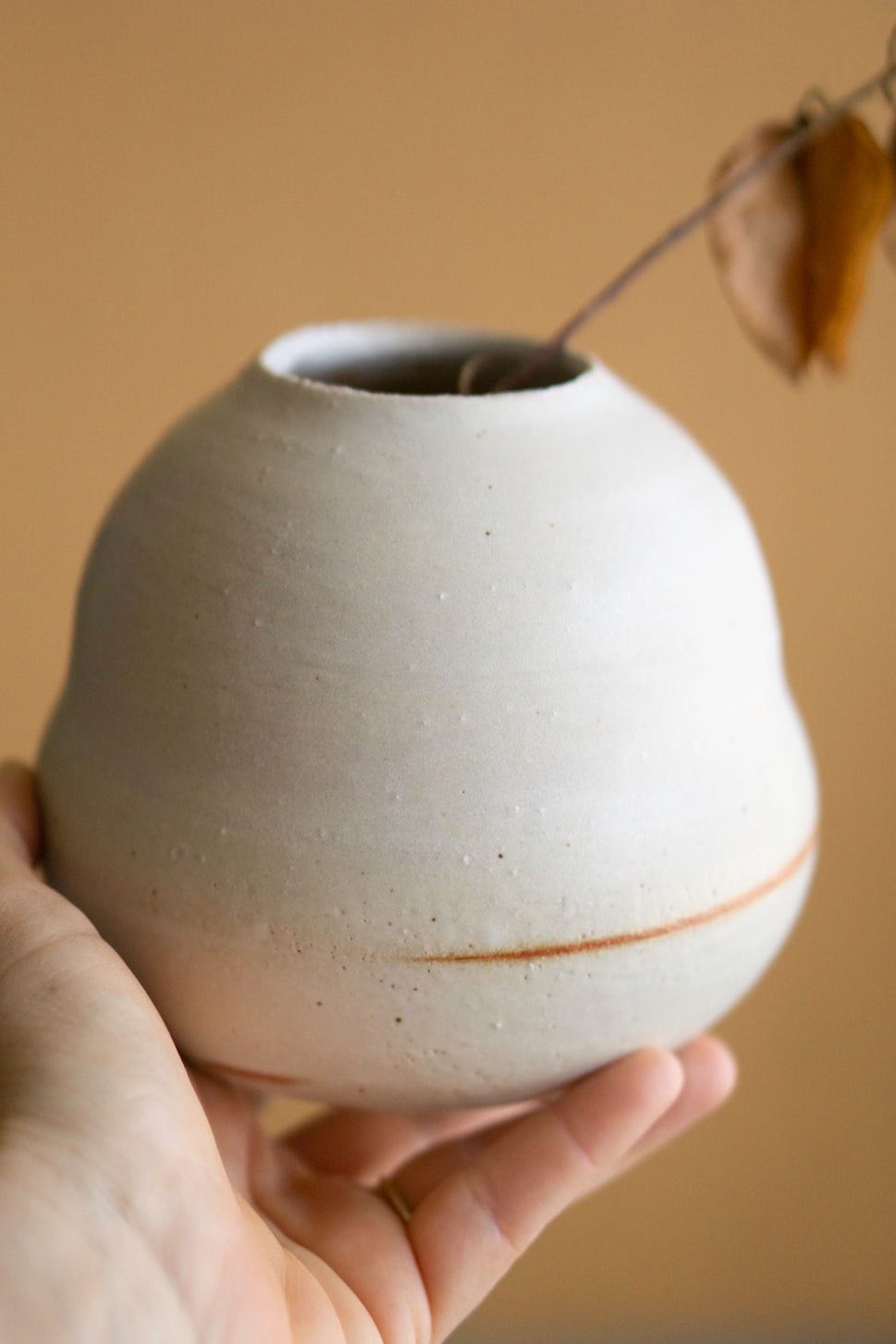 Wheel-thrown and hand-shaped, this vase embodies quiet elegance and mindful simplicity. Its matte white glaze and clean silhouette draw inspiration from nature’s calm and the clarity of minimal design. A timeless design that brings calm and simplicity to your space.