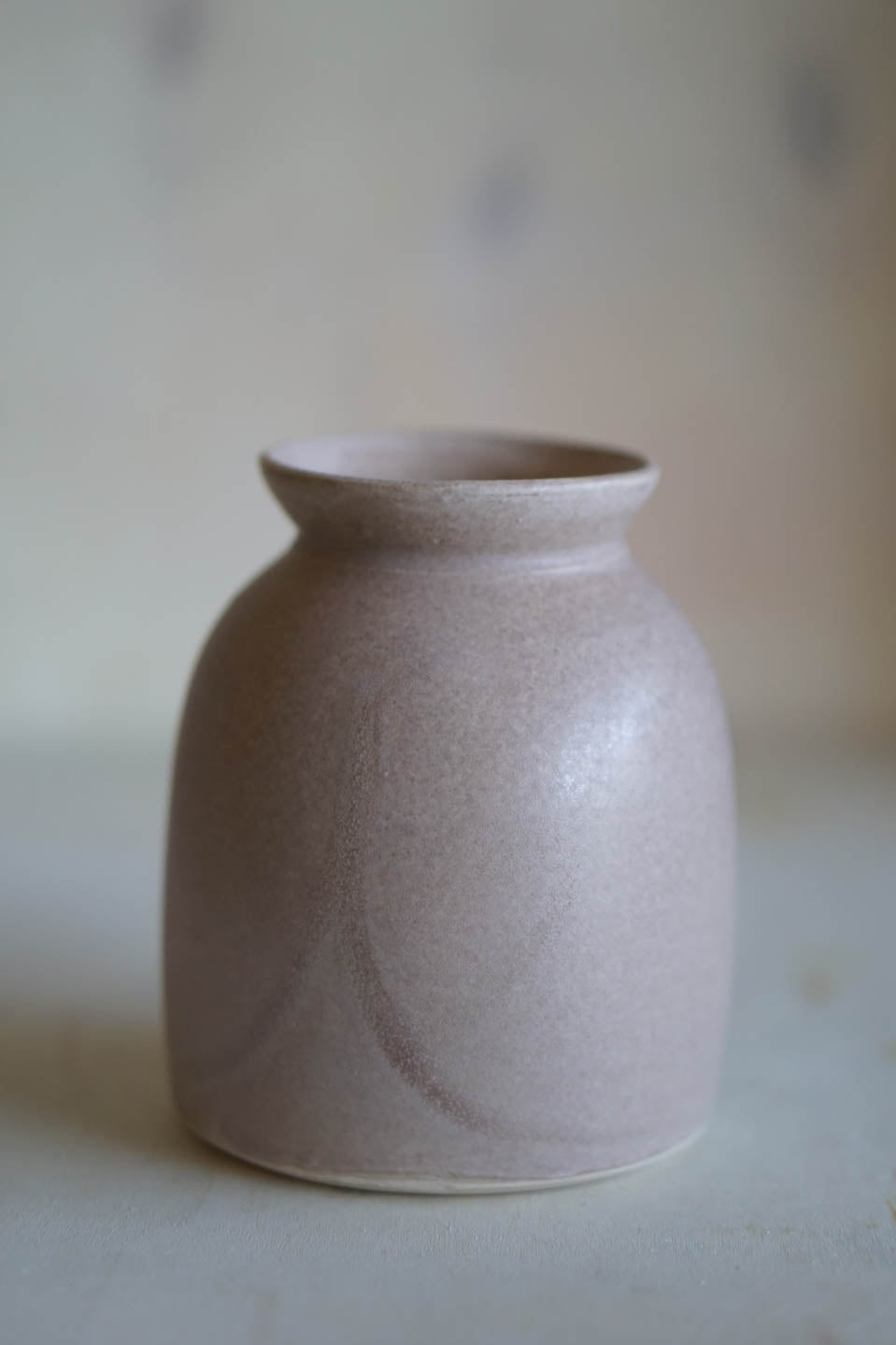 Hand thrown on the pottery wheel. Glazed in a pinkish stoney matte glaze. A charming and distinctive vase, perfect for showcasing fresh garden flowers or any small, natural bouquet.