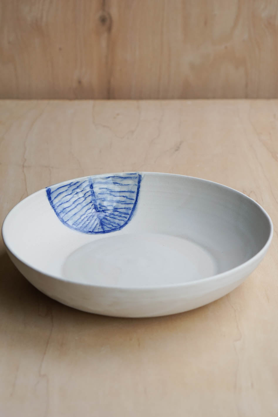 A milky matte white serving bowl with a glossy side decoration, perfect for serving fresh salads and elevating any table setting.