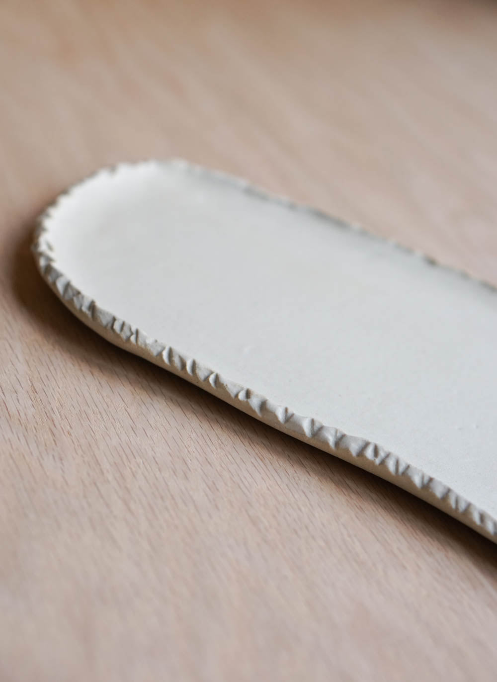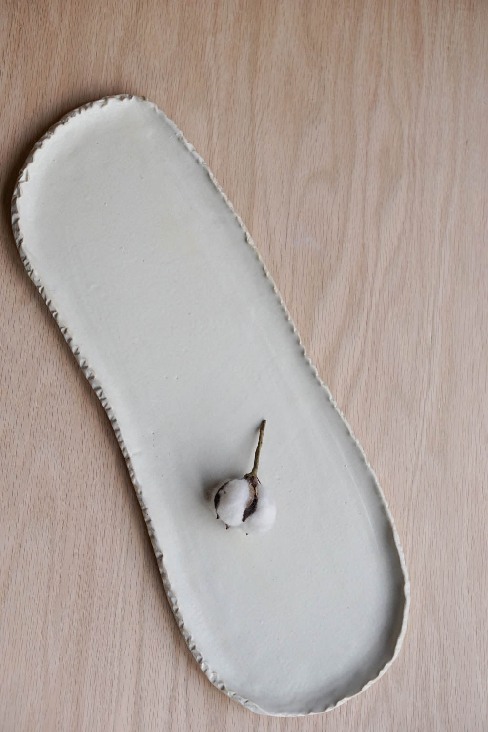 Crafted from white clay and adorned with a matte finish, this tray features an organic shape that adds a touch of natural beauty to any space. Versatile and unique, it serves as a perfect gathering spot for an array of small decorations, making it an exquisite centerpiece for your table. only one like this is available.